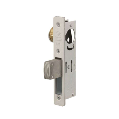 The MS1850S-X5X Series MS® Deadlock answers the security need of sliding narrow stile aluminum doors in commercial, industrial, and institutional buildings. The locking mechanism is identical to the MS1850S Series MS Deadlock, except that the massive laminated bolt is provided in a hook shape to resist the parting motion of sliding door and jamb. The over-center maximum security (MS) locking action assures that forced entry attempts to pry the door in any direction, up, down, or sideways will be defeated.