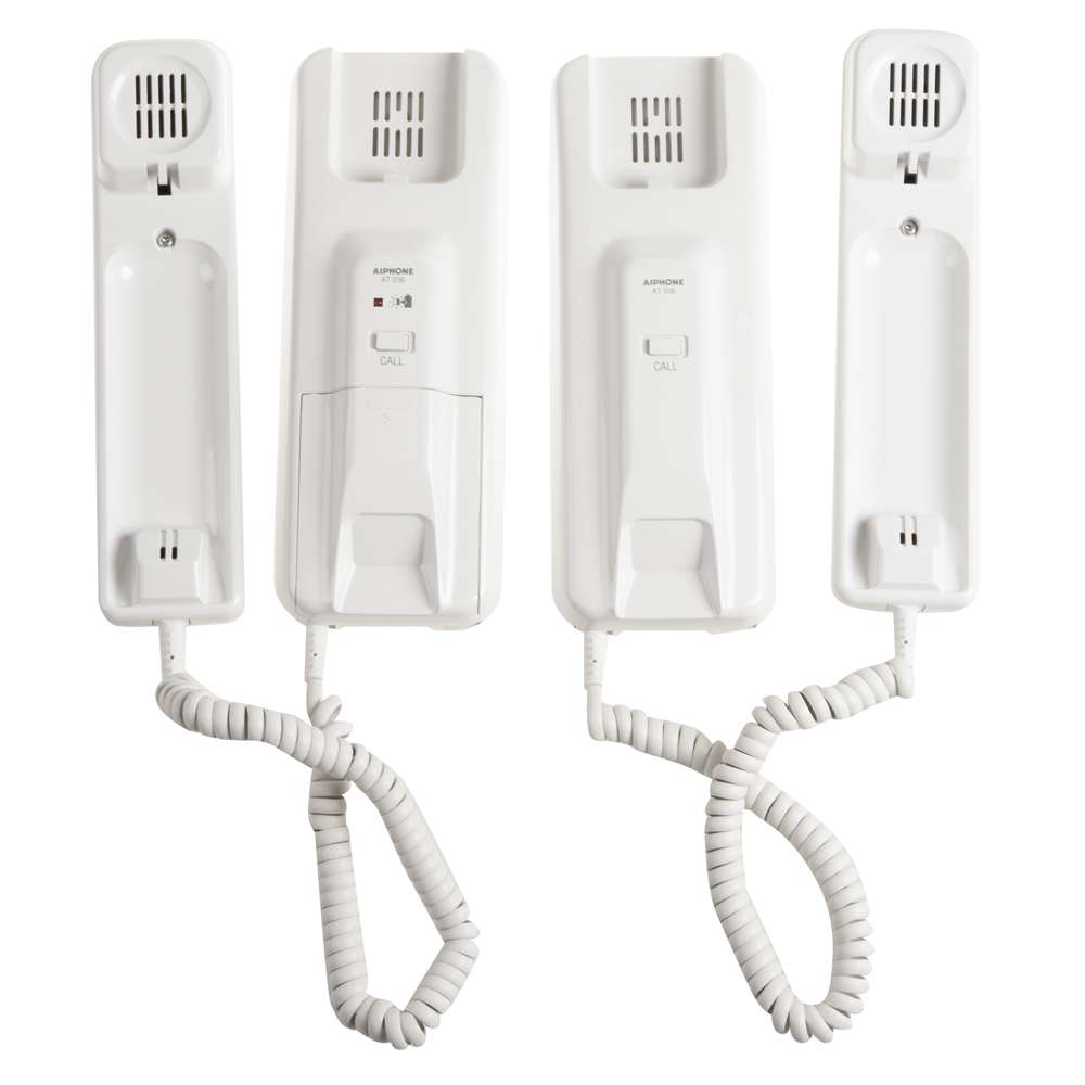 The AC-406 Audio Intercom System includes box set with AT-206 white audio master station and AT-306 white audio sub master station.