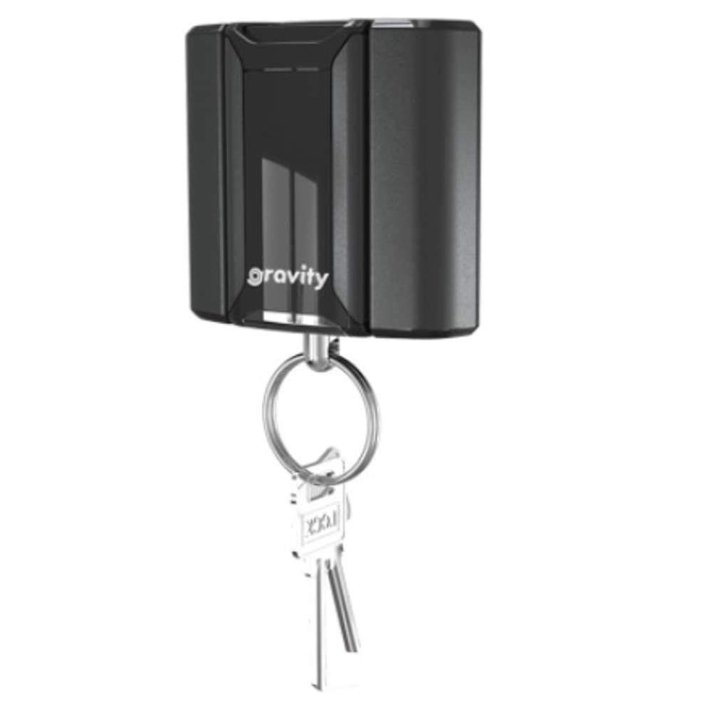 Gravity ties the keys to its user to remain in the proximity of the tether. Gravity® works by linking cards/keys via an electronic signal to avoid keys being lost from the start. Upon breaching the 20-foot radius Gravity's unique alarm, vibration and strobe light are triggered to alert users to quickly retrace steps to recover unit.