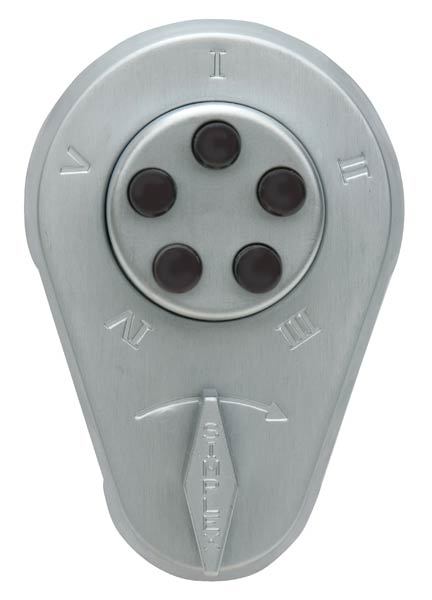 Mechanical pushbutton lock eliminates problems and costs associated with issuing, controlling, and collecting keys and cards. Provides fully mechanical access control, while allowing free egress at all times by interior thumbturn. Deadbolt models must be manually relocked. Deadlocking spring latch models automatically relock each time the door closes.