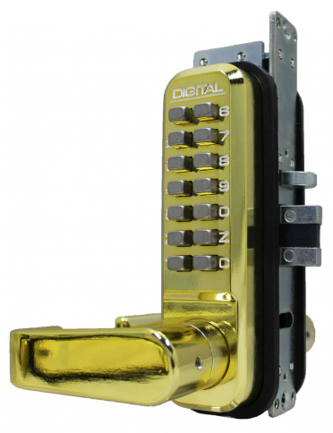 LockeyUSA 2985BBDC Keyless Narrow Stile Lever Lock Passage Bright Brass