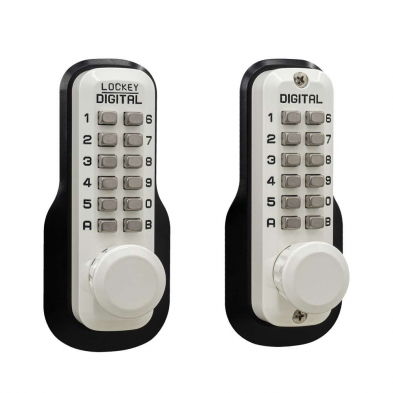 The LockeyUSA M230 is a mechanical keyless deadlock spring latch, with double combination (DC), in White (WH) finish. These are the main features: