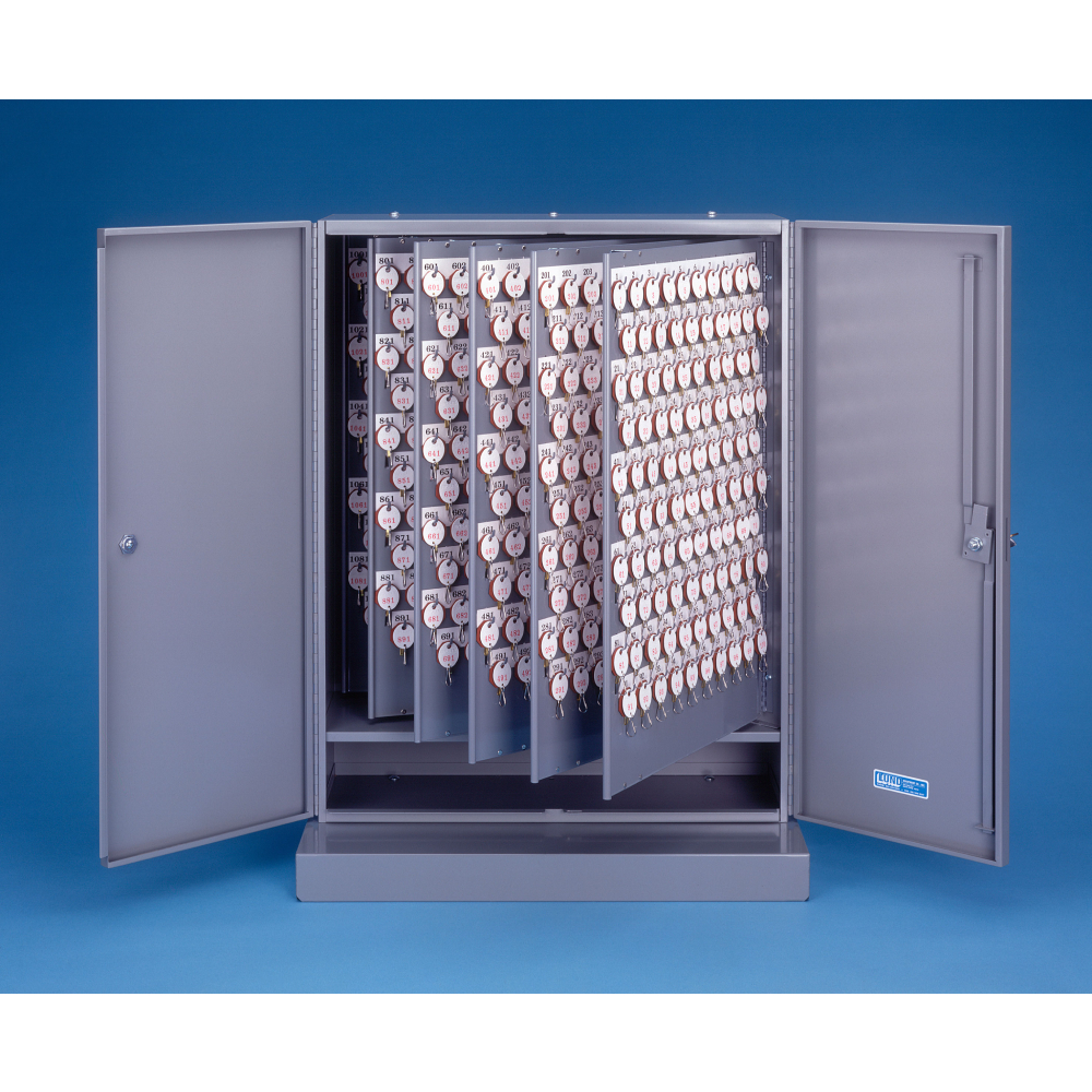 Lund 1800 double door key cabinets come furnished with the complete 2-tag system, 1-tag, or no tag system. The 1800 series houses 700-1200 hooks with the capability of holding 3-4 standard keys per hook. The cabinet is made from 18 gauge steel, with 20 gauge panels and a 3 point locking device.