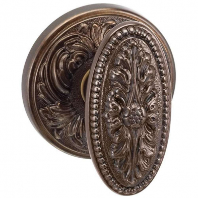 Omnia went all out when designing their new Classico Collection. The Classico Floral Oval Knobset is a stunning example of how beautiful detailing and old world shapes can come together to form a knob that looks rich. Add a bit of traditional glamor to your home with the Omnia 59FL egg knob with round rose. It is available in 4 finishes: Siena Brass (pictured), Florentine Brass, Etruscan Bronze, and Venetian Nickel. All of the finishes are designed to highlight the intricate detailing of both knob and rose. Choose from dummy, passage, and privacy functions for 1-3/8", 1-3/4", 2" thick doors with either 2-3/8" or 2-3/4" backsets.