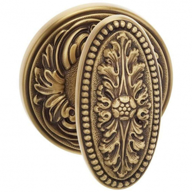 Omnia went all out when designing their new Classico Collection. The Classico Floral Oval Knobset is a stunning example of how beautiful detailing and old world shapes can come together to form a knob that looks rich. Add a bit of traditional glamor to your home with the Omnia 59FL egg knob with round rose. It is available in 4 finishes: Siena Brass (pictured), Florentine Brass, Etruscan Bronze, and Venetian Nickel. All of the finishes are designed to highlight the intricate detailing of both knob and rose. Choose from dummy, passage, and privacy functions for 1-3/8", 1-3/4", 2" thick doors with either 2-3/8" or 2-3/4" backsets.