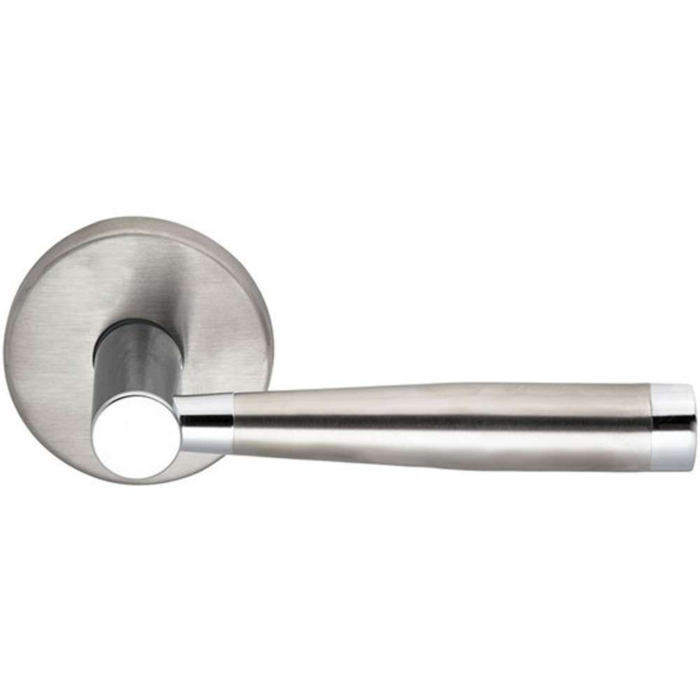 The Omnia #18 stainless steel lever combines the luster of polished stainless with brushed (satin) stainless steel for a truly eye catching design. The long slim lever has concealed mounting screws for an ultra contemporary look. Used for both residential and commercial doors, where longevity and beauty are important.