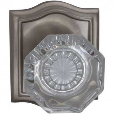A beautiful reminder of days gone by, the Clear Glass Knob With Arched Rose has all the glamor and romantic styling that you would expect from a vintage knob on a hundred year old home; and since it is made out of brass by Omnia Industries, it is sure to become a vintage piece of its own. It is available in single dummy, double dummy, passage and privacy functions. Both the single dummy and the double dummy functions feature concealed surface mounting for easy installation. The passage and privacy functions are available for either 2-3/8" or 2-3/4" backsets and the two functions are packaged for both 1-3/8" or 1-3/4" thick doors. Available in 8 finishes.