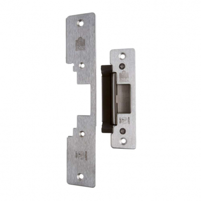 The ROFU 2400 Kit is a universal, burglary-resistant electric strike, compatible with a wide range of cylindrical locksets. The kit includes two faceplates and is dual voltage and field reversible between fail-safe and fail-secure.