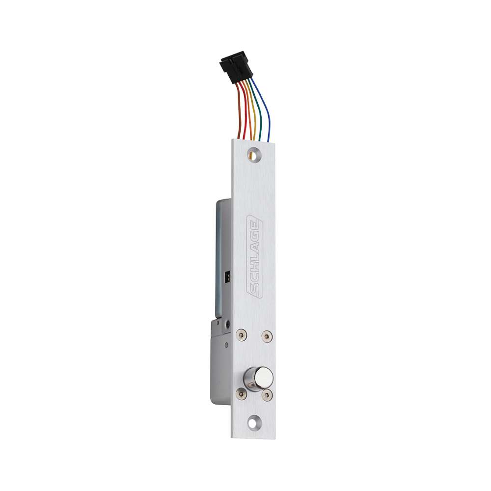 The Schlage Electronics PB405 Electrified Dead Bolt Lock is a robust security solution designed for minimal impact installations within door frames. It's suitable for applications where a discrete yet strong locking mechanism is needed.