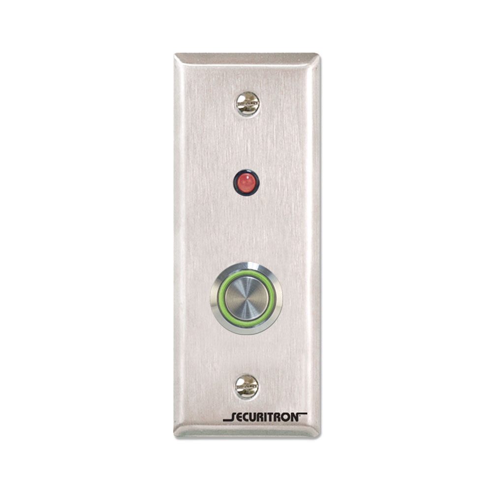 The Securitron PB4LN-2 is a robust and versatile 1-inch stainless steel pushbutton designed for security and access control applications. This model features an LED-illuminated halo, which provides visual feedback, making it an ideal choice for situations requiring a clear indication of activation, such as "push to exit" scenarios.
