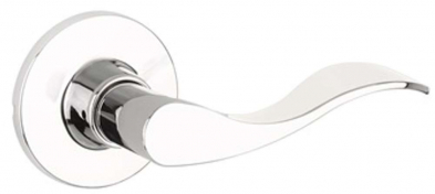 The modern and circular Owen rosette helps to ground the playful and wavy Brunswick door lever.