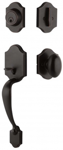Both traditional and new revival, the Everly Entry Set is characterized by its arched rosettes and classically elegant combinations, as shown here with the Auburn Knob.