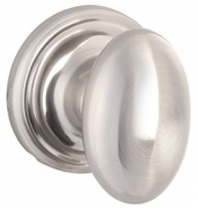 The oblong Auburn "egg" knob skews contemporary when paired with the subtlely detailed Maguire round rosette.