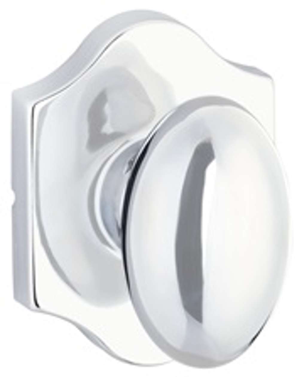 The egg-shaped Auburn door knob looks regal when paired with the Everly's dignified rosette profile.