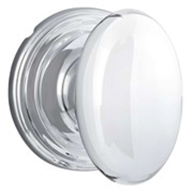 The oblong Auburn "egg" knob skews contemporary when paired with the subtlely detailed Maguire round rosette.
