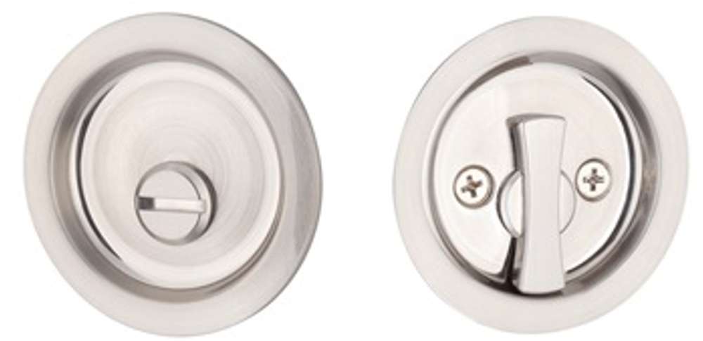 Finish: The Yale Expressions Round Privacy Pocket Door Lock comes in Brass (US3), Satin Brass (US4), Oil Rubbed Bronze (US10B), Satin Nickel (US15), Flat Black (US19), and Polished Chrome (US26) finish.