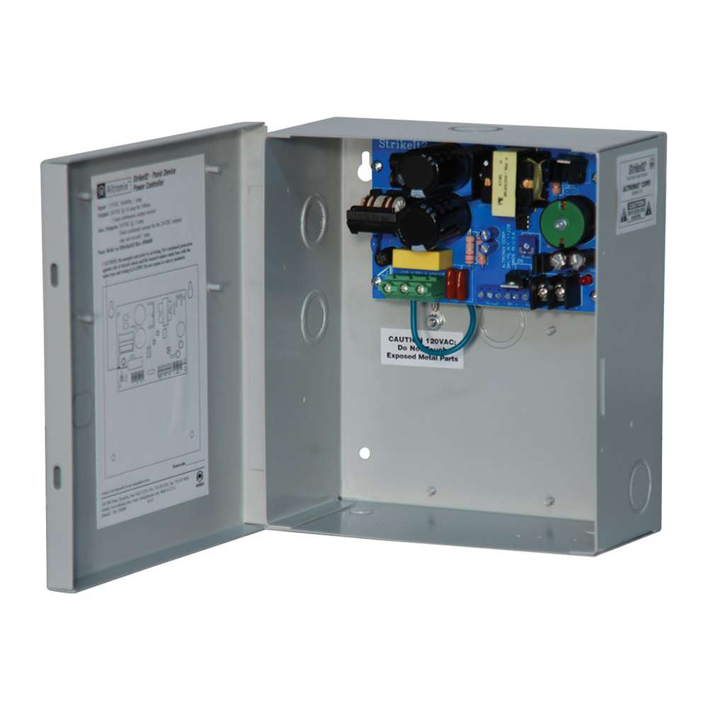 Altronix STRIKEIT2 Series operates one (1) 24VDC panic hardware device. It is designed to handle the high current surge panic hardware locking device demand. In addition, an auxiliary power output provides power for accessory devices such as card readers, keypads, REX PIRs, electronic timers, relays, etc.