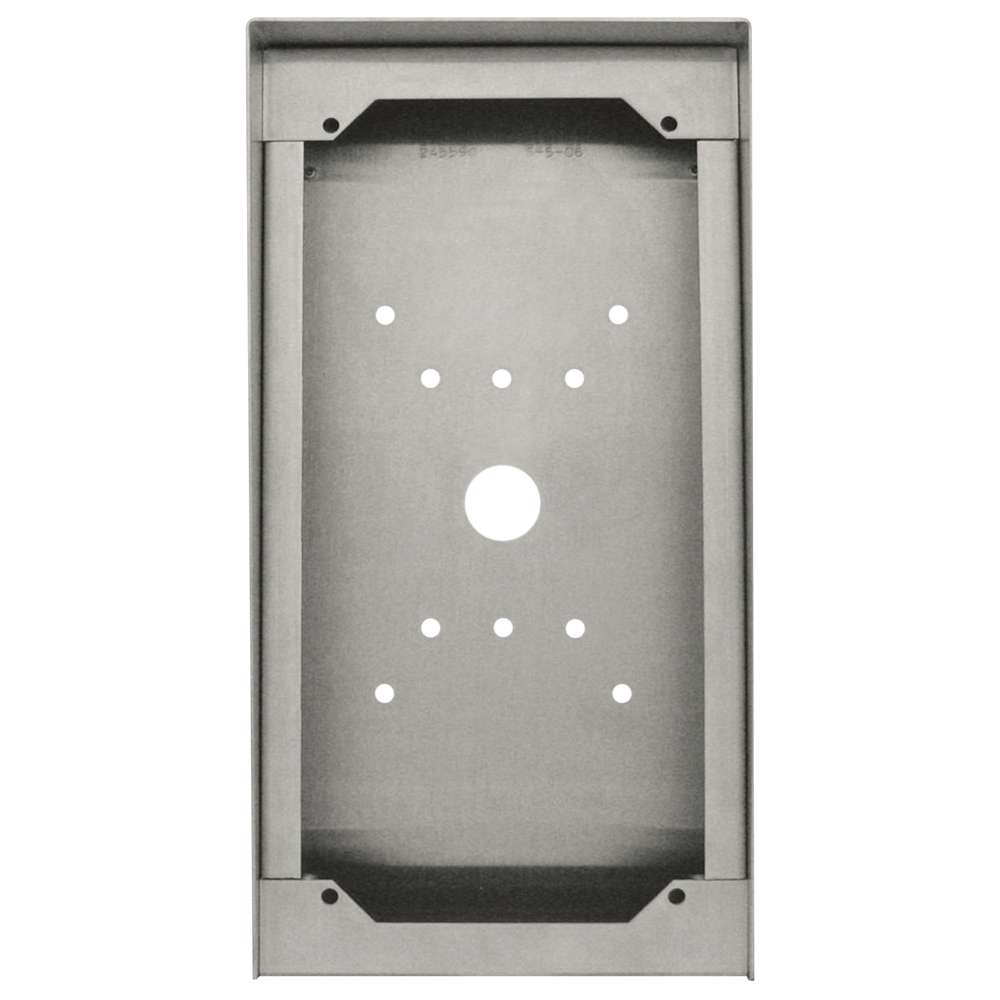 The SBX-DVF-P Stainless Steel Surface Mount Box is an 18-gauge stainless steel enclosure designed for surface mounting video door stations with the built in HID ProxPoint Plus and HID iClass readers.