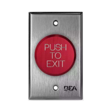 BEA Pneumatic Push Button, Single Gang Plate, Oversized 2 In. Red Button, "Push To Exit"