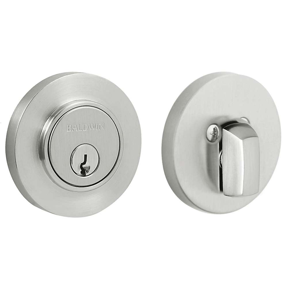 Finish: The Baldwin Contemporary Deadbolt comes in Lifetime Polished Brass (8244.003), Non-Lacquered Brass (8244.031), Vintage Brass (8244.033), Lifetime Satin Brass (8244.044), Satin Brass and Black (8244.050), Lifetime Polished Nickel (8244.055), Lifetime Satin Nickel (8244.056), Satin Brass and Brown (8244.060), Oil Rubbed Bronze (8244.102), Venetian Bronze (8244.112), Satin Nickel (8244.150), Antique Nickel (8244.151), Satin Black (8244.190), Polished Chrome (8244.260), Satin Chrome (8244.264), Distressed Oil Rubbed Bronze (8244.402), and Distressed Antique Nickel (8244.452) finish.