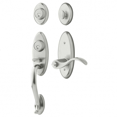 Greet your guests in style with this classically styled entrance set. The single cylinder deadbolt locks and unlocks from the inside with a turn-button, and from the outside with a key. Two-Point means there are two points of locking on the mechanism. There is one deadbolt on the same plate as the handle and another deadbolt above the handle.