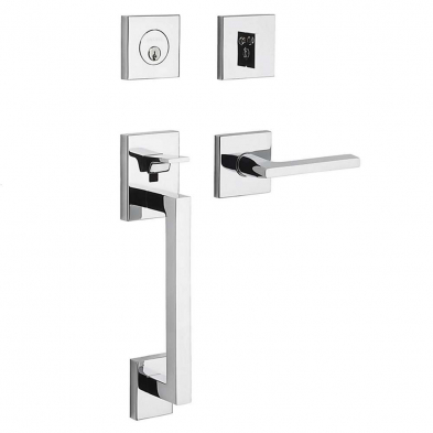 The Minneapolis handleset features a classically styled pull and grip with a square mounting and a squared deadbolt. Its simple and beautiful design will complement a variety of decors. With Baldwin you never have to sacrifice style for security! Single cylinder function locks and unlocks with a push turn on the inside and a key on the outside.
