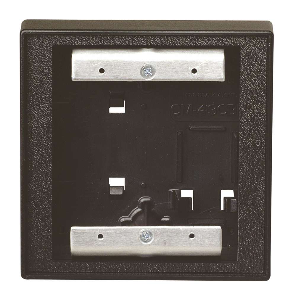 CM-53 Application: Surface Box, Standard Depth, provision for wireless. Double wall, black polymer (ABS) flame/impact resistant, 4-1/2 W x 4-1/2 H x 2 D. For use with CM-2010 and CM-2025 vestibule switches.