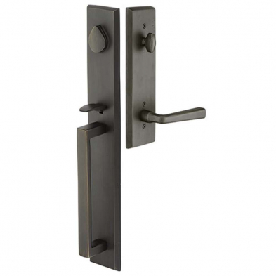 Rustic Modern Rectangular Full Length Handleset by Emtek Sandcast Bronze Series