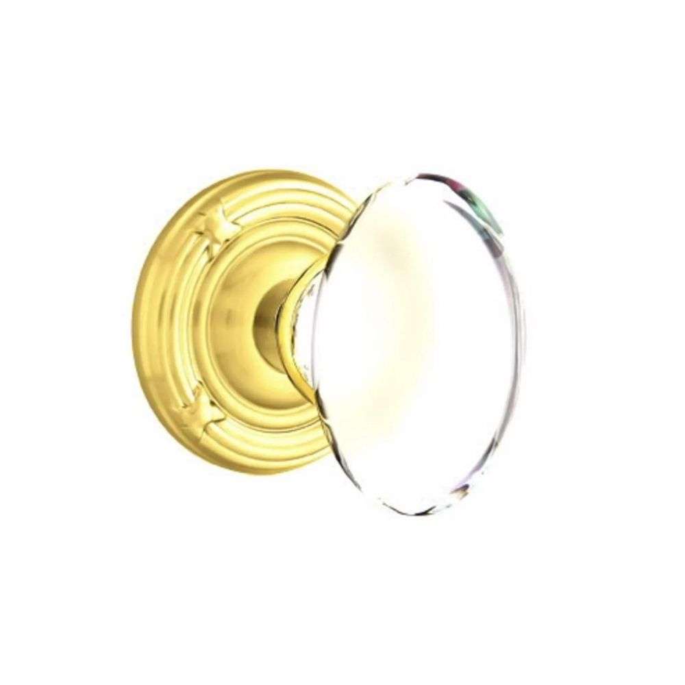 The Crystal Collection's knob / lever handles are supported by springs mounted behind the rosettes and sideplates, which return the handles back to the rest position and prevent lever sag. The latches are heavy-duty die case construction, with strong internal springs, solid brass nose bolts, and sintered metal cams. A plastic bushing located in the joint between the handle and the rosette ensures a friction-free wear surface, preventing metal from bearing on metal and providing smooth, long-lasting operation. Handles are positvely connected to rosettes with a permanent clip. Each has a set screw which eliminates "handle wobble" when tightened. Emtek's threaded tubes are machined brass to ensure good threads and prevent corrosion.