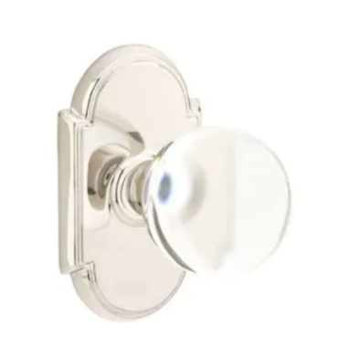 The Crystal Collection's knob / lever handles are supported by springs mounted behind the rosettes and sideplates, which return the handles back to the rest position and prevent lever sag. The latches are heavy-duty die case construction, with strong internal springs, solid brass nose bolts, and sintered metal cams. A plastic bushing located in the joint between the handle and the rosette ensures a friction-free wear surface, preventing metal from bearing on metal and providing smooth, long-lasting operation. Handles are positvely connected to rosettes with a permanent clip. Each has a set screw which eliminates "handle wobble" when tightened. Emtek's threaded tubes are machined brass to ensure good threads and prevent corrosion.