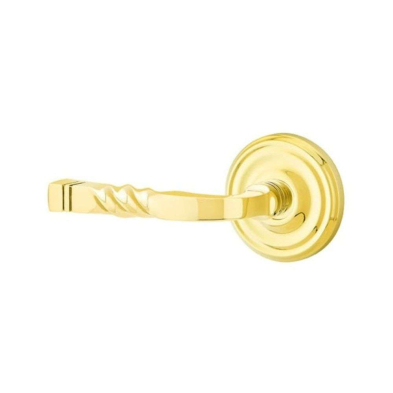 The Brass Designer Collection's knob / lever handles are supported by springs mounted behind the rosettes and sideplates, which return the handles back to the rest position and prevent lever sag. The latches are heavy-duty die case construction, with strong internal springs, solid brass nose bolts, and sintered metal cams. A plastic bushing located in the joint between the handle and the rosette ensures a friction-free wear surface, preventing metal from bearing on metal and providing smooth, long-lasting operation. Handles are positvely connected to rosettes with a permanent clip. Each has a set screw which eliminates "handle wobble" when tightened. Emtek's threaded tubes are machined brass to ensure good threads and prevent corrosion.