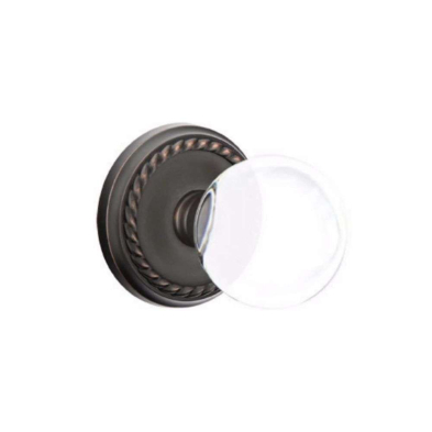 The Crystal Collection's knob / lever handles are supported by springs mounted behind the rosettes and sideplates, which return the handles back to the rest position and prevent lever sag. The latches are heavy-duty die case construction, with strong internal springs, solid brass nose bolts, and sintered metal cams. A plastic bushing located in the joint between the handle and the rosette ensures a friction-free wear surface, preventing metal from bearing on metal and providing smooth, long-lasting operation. Handles are positvely connected to rosettes with a permanent clip. Each has a set screw which eliminates "handle wobble" when tightened. Emtek's threaded tubes are machined brass to ensure good threads and prevent corrosion.