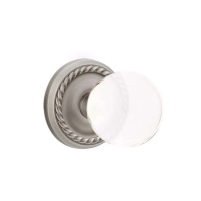 The Crystal Collection's knob / lever handles are supported by springs mounted behind the rosettes and sideplates, which return the handles back to the rest position and prevent lever sag. The latches are heavy-duty die case construction, with strong internal springs, solid brass nose bolts, and sintered metal cams. A plastic bushing located in the joint between the handle and the rosette ensures a friction-free wear surface, preventing metal from bearing on metal and providing smooth, long-lasting operation. Handles are positvely connected to rosettes with a permanent clip. Each has a set screw which eliminates "handle wobble" when tightened. Emtek's threaded tubes are machined brass to ensure good threads and prevent corrosion.