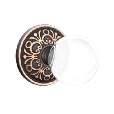 The Crystal Collection's knob / lever handles are supported by springs mounted behind the rosettes and sideplates, which return the handles back to the rest position and prevent lever sag. The latches are heavy-duty die case construction, with strong internal springs, solid brass nose bolts, and sintered metal cams. A plastic bushing located in the joint between the handle and the rosette ensures a friction-free wear surface, preventing metal from bearing on metal and providing smooth, long-lasting operation. Handles are positvely connected to rosettes with a permanent clip. Each has a set screw which eliminates "handle wobble" when tightened. Emtek's threaded tubes are machined brass to ensure good threads and prevent corrosion.