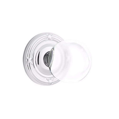 The Crystal Collection's knob / lever handles are supported by springs mounted behind the rosettes and sideplates, which return the handles back to the rest position and prevent lever sag. The latches are heavy-duty die case construction, with strong internal springs, solid brass nose bolts, and sintered metal cams. A plastic bushing located in the joint between the handle and the rosette ensures a friction-free wear surface, preventing metal from bearing on metal and providing smooth, long-lasting operation. Handles are positvely connected to rosettes with a permanent clip. Each has a set screw which eliminates "handle wobble" when tightened. Emtek's threaded tubes are machined brass to ensure good threads and prevent corrosion.