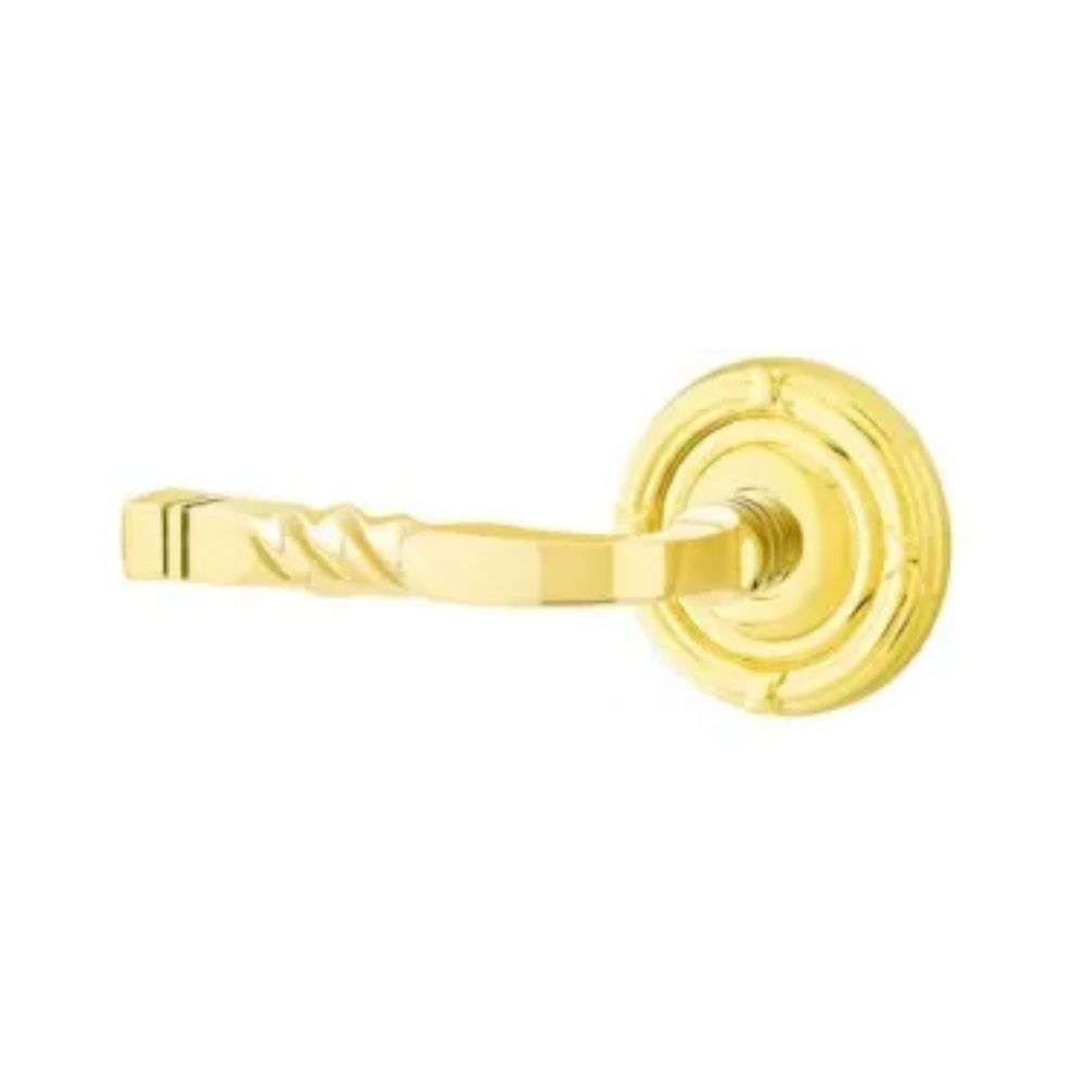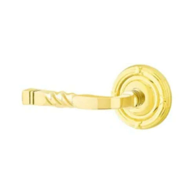 The Brass Designer Collection's knob / lever handles are supported by springs mounted behind the rosettes and sideplates, which return the handles back to the rest position and prevent lever sag. The latches are heavy-duty die case construction, with strong internal springs, solid brass nose bolts, and sintered metal cams. A plastic bushing located in the joint between the handle and the rosette ensures a friction-free wear surface, preventing metal from bearing on metal and providing smooth, long-lasting operation. Handles are positvely connected to rosettes with a permanent clip. Each has a set screw which eliminates "handle wobble" when tightened. Emtek's threaded tubes are machined brass to ensure good threads and prevent corrosion.