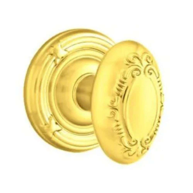 The Brass Designer Collection's knob / lever handles are supported by springs mounted behind the rosettes and sideplates, which return the handles back to the rest position and prevent lever sag. The latches are heavy-duty die case construction, with strong internal springs, solid brass nose bolts, and sintered metal cams. A plastic bushing located in the joint between the handle and the rosette ensures a friction-free wear surface, preventing metal from bearing on metal and providing smooth, long-lasting operation. Handles are positvely connected to rosettes with a permanent clip. Each has a set screw which eliminates "handle wobble" when tightened. Emtek's threaded tubes are machined brass to ensure good threads and prevent corrosion.