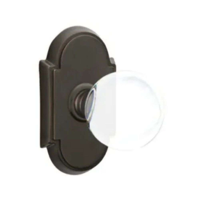 The Crystal Collection's knob / lever handles are supported by springs mounted behind the rosettes and sideplates, which return the handles back to the rest position and prevent lever sag. The latches are heavy-duty die case construction, with strong internal springs, solid brass nose bolts, and sintered metal cams. A plastic bushing located in the joint between the handle and the rosette ensures a friction-free wear surface, preventing metal from bearing on metal and providing smooth, long-lasting operation. Handles are positvely connected to rosettes with a permanent clip. Each has a set screw which eliminates "handle wobble" when tightened. Emtek's threaded tubes are machined brass to ensure good threads and prevent corrosion.