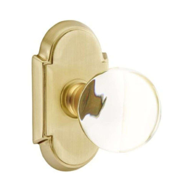 The Crystal Collection's knob / lever handles are supported by springs mounted behind the rosettes and sideplates, which return the handles back to the rest position and prevent lever sag. The latches are heavy-duty die case construction, with strong internal springs, solid brass nose bolts, and sintered metal cams. A plastic bushing located in the joint between the handle and the rosette ensures a friction-free wear surface, preventing metal from bearing on metal and providing smooth, long-lasting operation. Handles are positvely connected to rosettes with a permanent clip. Each has a set screw which eliminates "handle wobble" when tightened. Emtek's threaded tubes are machined brass to ensure good threads and prevent corrosion.