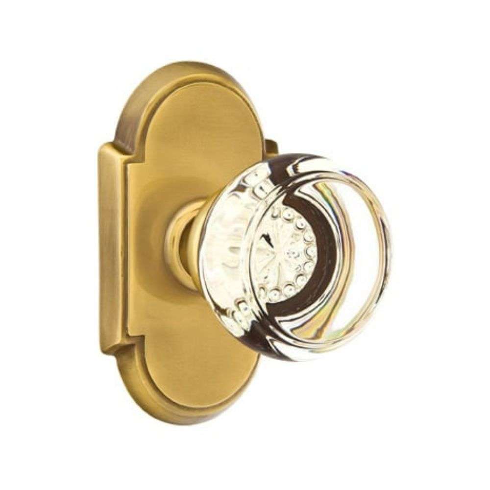The Crystal Collection's knob / lever handles are supported by springs mounted behind the rosettes and sideplates, which return the handles back to the rest position and prevent lever sag. The latches are heavy-duty die case construction, with strong internal springs, solid brass nose bolts, and sintered metal cams. A plastic bushing located in the joint between the handle and the rosette ensures a friction-free wear surface, preventing metal from bearing on metal and providing smooth, long-lasting operation. Handles are positvely connected to rosettes with a permanent clip. Each has a set screw which eliminates "handle wobble" when tightened. Emtek's threaded tubes are machined brass to ensure good threads and prevent corrosion.