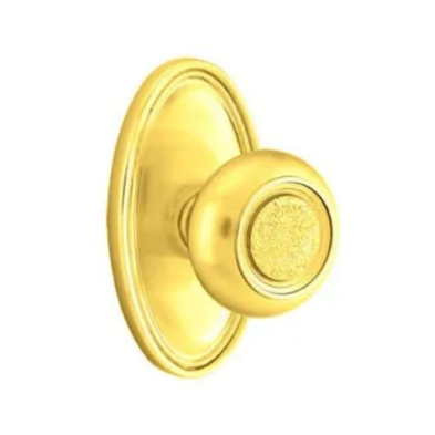 The Brass Designer Collection's knob / lever handles are supported by springs mounted behind the rosettes and sideplates, which return the handles back to the rest position and prevent lever sag. The latches are heavy-duty die case construction, with strong internal springs, solid brass nose bolts, and sintered metal cams. A plastic bushing located in the joint between the handle and the rosette ensures a friction-free wear surface, preventing metal from bearing on metal and providing smooth, long-lasting operation. Handles are positvely connected to rosettes with a permanent clip. Each has a set screw which eliminates "handle wobble" when tightened. Emtek's threaded tubes are machined brass to ensure good threads and prevent corrosion.