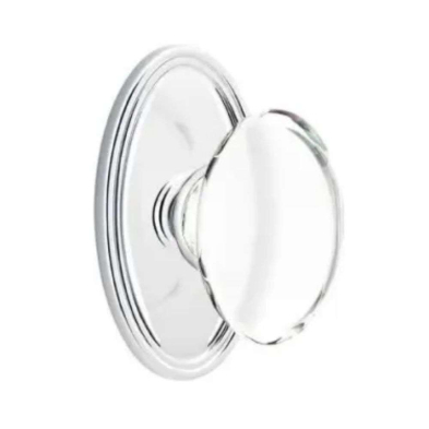 The Crystal Collection's knob / lever handles are supported by springs mounted behind the rosettes and sideplates, which return the handles back to the rest position and prevent lever sag. The latches are heavy-duty die case construction, with strong internal springs, solid brass nose bolts, and sintered metal cams. A plastic bushing located in the joint between the handle and the rosette ensures a friction-free wear surface, preventing metal from bearing on metal and providing smooth, long-lasting operation. Handles are positvely connected to rosettes with a permanent clip. Each has a set screw which eliminates "handle wobble" when tightened. Emtek's threaded tubes are machined brass to ensure good threads and prevent corrosion.