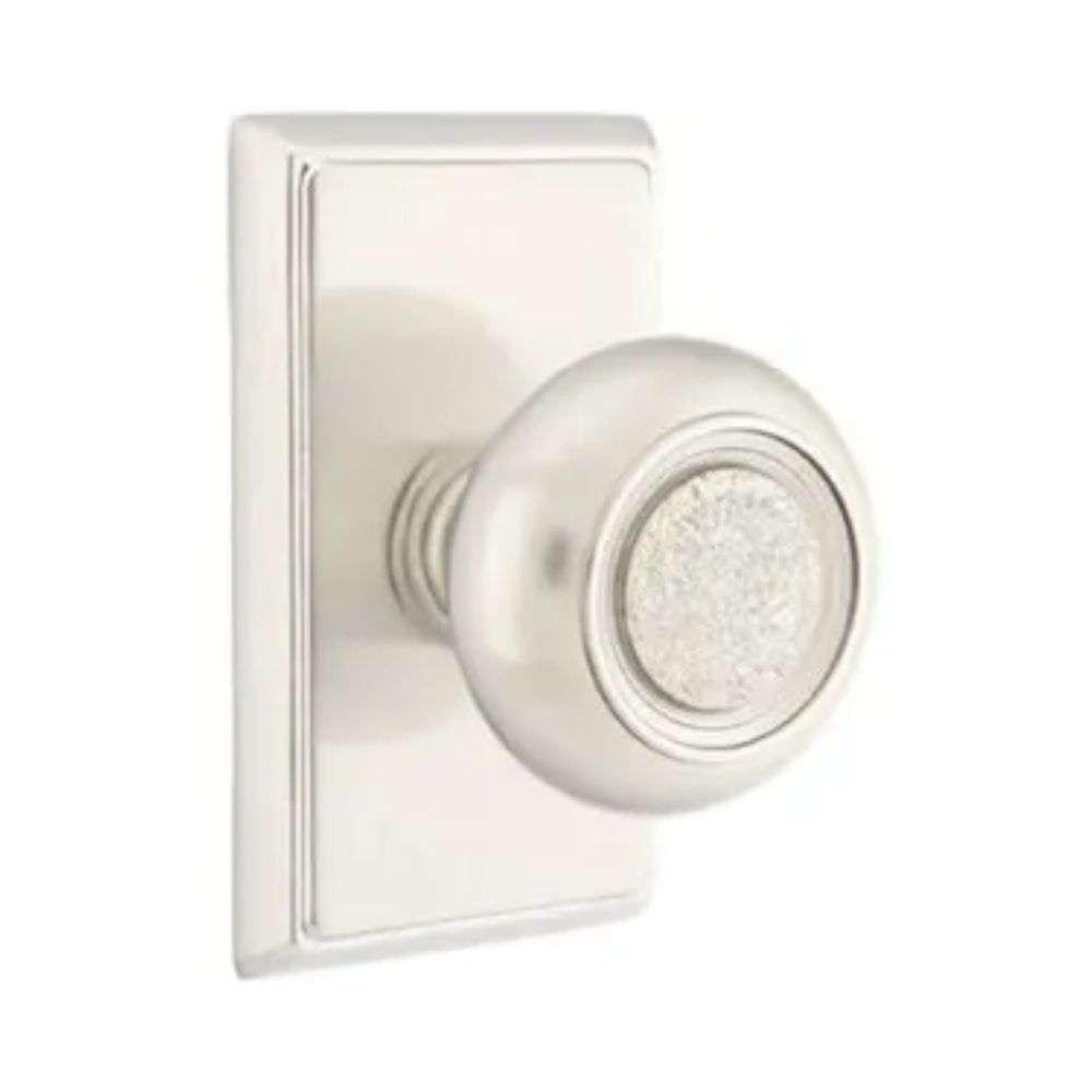 The Emtek Belmont is a rugged and beautifully crafted knobset using traditional American latches complete with a variety of trim styles, handcrafted from authentic materials. The knobset is operated by a knob from both the interior and exterior.