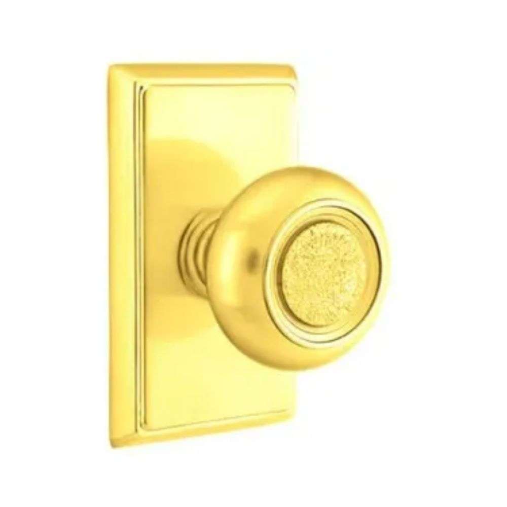 The Brass Designer Collection's knob / lever handles are supported by springs mounted behind the rosettes and sideplates, which return the handles back to the rest position and prevent lever sag. The latches are heavy-duty die case construction, with strong internal springs, solid brass nose bolts, and sintered metal cams. A plastic bushing located in the joint between the handle and the rosette ensures a friction-free wear surface, preventing metal from bearing on metal and providing smooth, long-lasting operation. Handles are positvely connected to rosettes with a permanent clip. Each has a set screw which eliminates "handle wobble" when tightened. Emtek's threaded tubes are machined brass to ensure good threads and prevent corrosion.