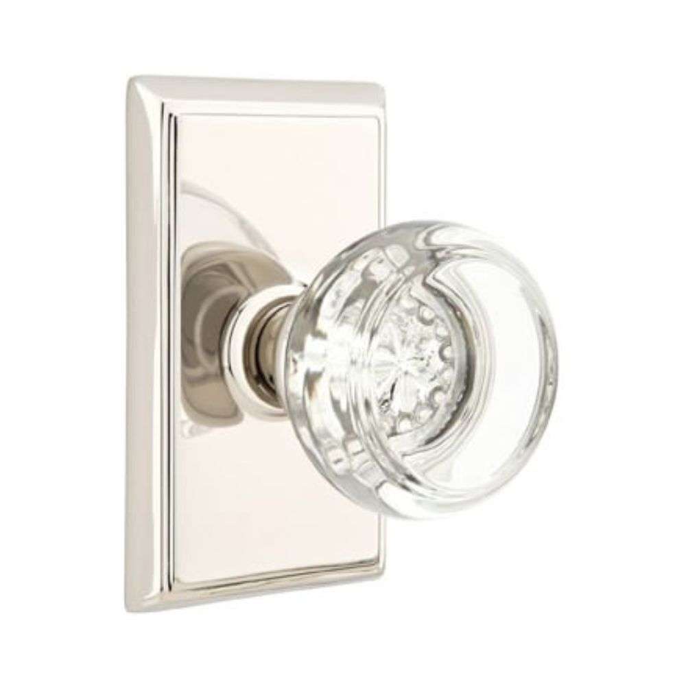 The Crystal Collection's knob / lever handles are supported by springs mounted behind the rosettes and sideplates, which return the handles back to the rest position and prevent lever sag. The latches are heavy-duty die case construction, with strong internal springs, solid brass nose bolts, and sintered metal cams. A plastic bushing located in the joint between the handle and the rosette ensures a friction-free wear surface, preventing metal from bearing on metal and providing smooth, long-lasting operation. Handles are positvely connected to rosettes with a permanent clip. Each has a set screw which eliminates "handle wobble" when tightened. Emtek's threaded tubes are machined brass to ensure good threads and prevent corrosion.