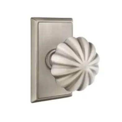 The Emtek Melon is a rugged and beautifully crafted knobset using traditional American latches complete with a variety of trim styles, handcrafted from authentic materials. The knobset is operated by a knob from both the interior and exterior.