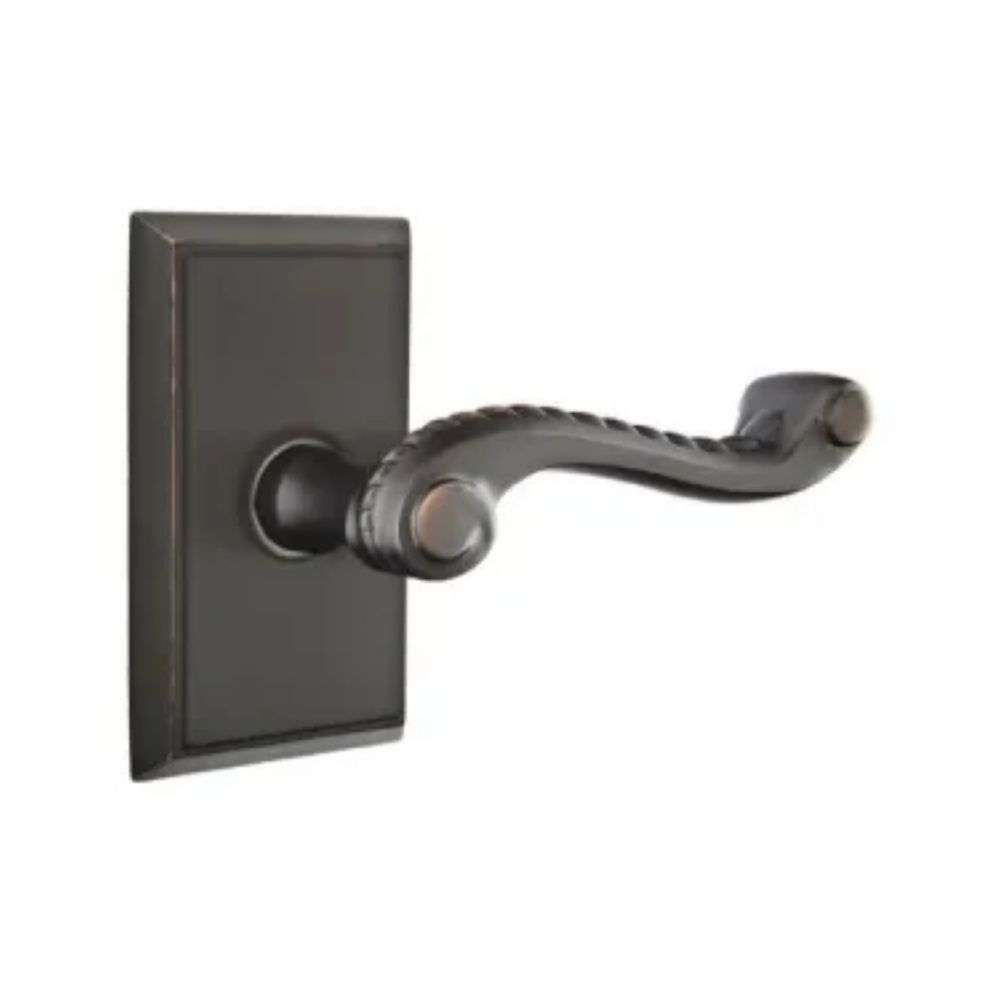 The Emtek Rope is a rugged and beautifully crafted leverset using traditional American latches complete with a variety of trim styles, handcrafted from authentic materials. The leverset is operated by a lever from both the interior and exterior.