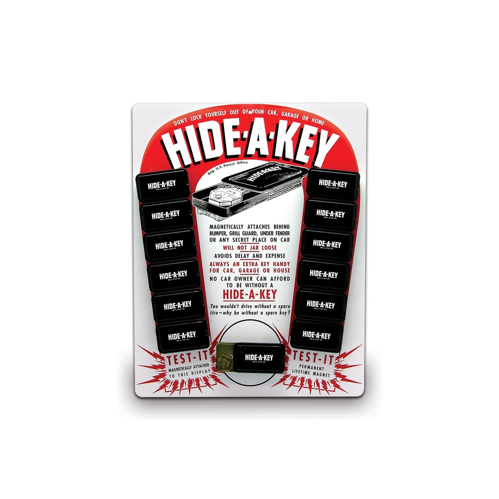 Its the "original" magnetic key holder. Features the extra powerful double size magnet. Hide-A-Keys are magnetically attached to 11-1/4" x 14-1/8" metal display board. 12 hide a keys per board. Made in the USA.