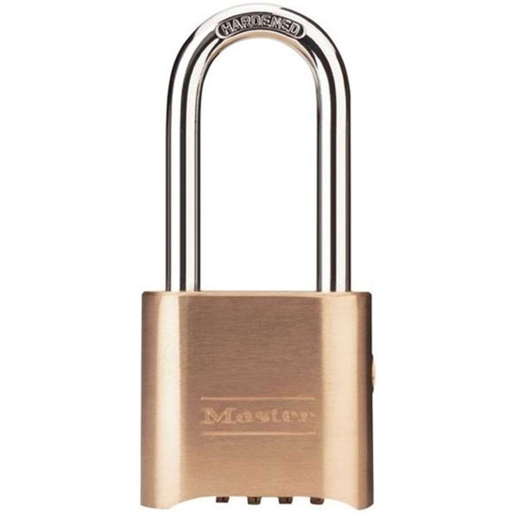 The Master Lock No. 176LH Resettable Combination Padlock features a 2in (51mm) wide solid brass case for strength and weatherability and a 2-1/4in (57mm) tall, 5/16in (8mm) diameter hardened steel shackle for excellent cut resistance. The 4-digit dials allow you to set-your-own combination and reset to restrict/change allowed access – 10,000 combinations available. The key override feature allows supervisory access at any time if needed.