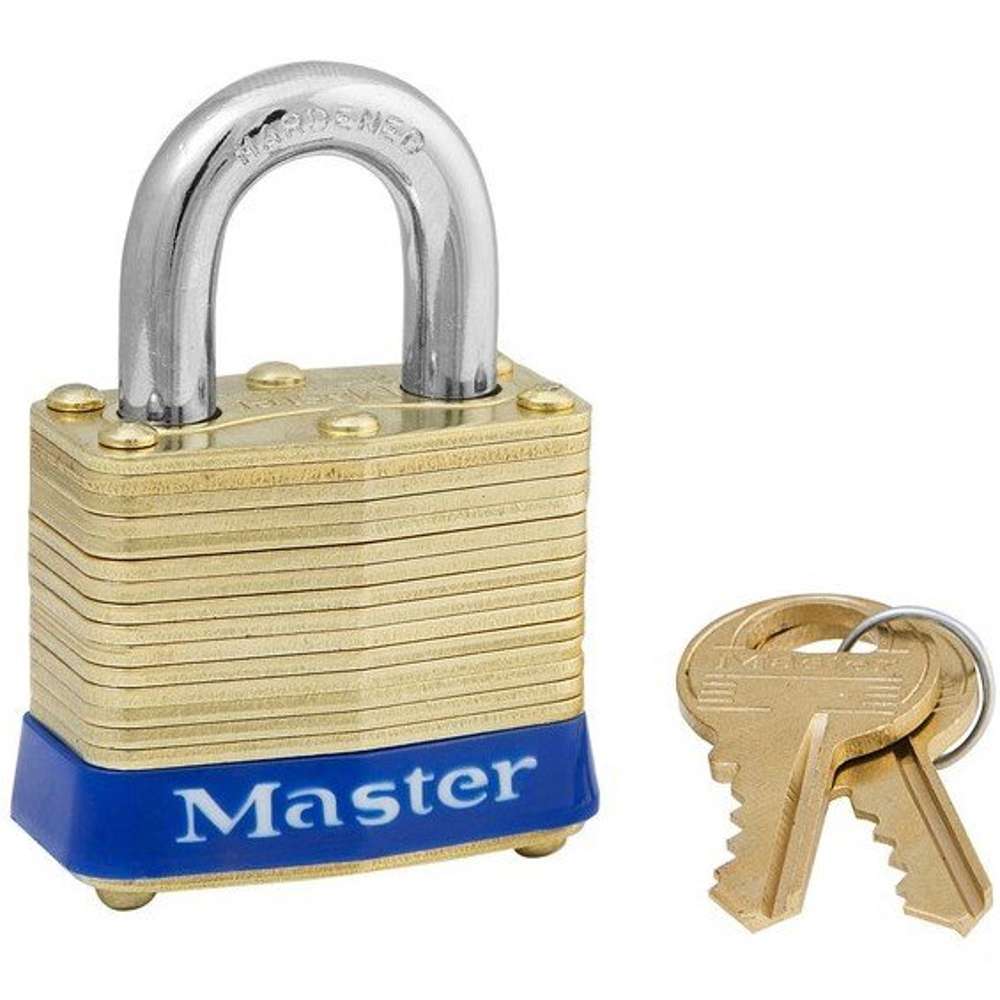 The Master Lock No. 4 Laminated Brass Padlock features a 1-9/16in (40mm) wide laminated brass body offering excellent corrosion resistance, making this lock ideal for marine and other harsh environments. The 3/4in (19mm) tall, 9/32in (7mm) diameter hardened steel shackle provides excellent cut resistance. Dual ball bearings locking for maximum pry resistance and the 4-pin W1 cylinder helps prevent picking.